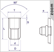 Inserti filettati testa a filo lamiera corpo zigrinato in acciaio zincato.